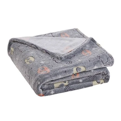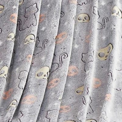 Make bedtime more fun with the VCNY Home Glow in the Dark Skelly Cats Plush Halloween Throw. A frightfully fun decorative throw for the Halloween season, this cozy plush throw features cats and skeleton designs that glow in the dark. You can activate the glow effect by first placing the throw by a light source and see it light up in the dark like magic! Made with super-soft plush material, this decorative kids’ throw measures 50 inches x 70 inches and is machine washable. You can keep this throw looking and feeling fresh by machine washing it in cold water and tumbling drying it on low setting as needed.
