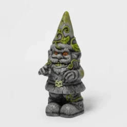 - Adorned with jack-o’-lanterns, orange and black round ornaments