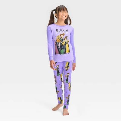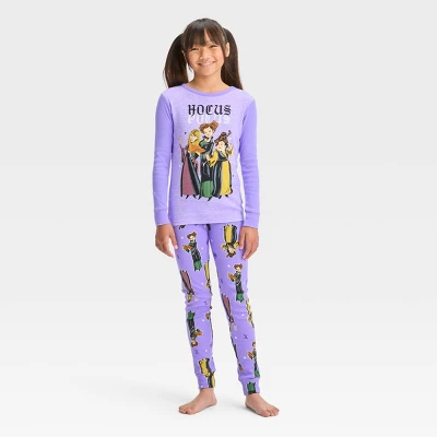 Your child will be ready to join the Sanderson sisters on their nighttime adventures in this 2-Piece Hocus Pocus Halloween Pajama Set. This PJ set includes a long-sleeve tee and pajama pants, both crafted from 100% cotton with ribbed cuffs and ankles for all-night snug comfort. The purple tee features an illustration of Winifred, Sarah and Mary under the Hocus Pocus logo, and is paired with purple pajama pants with allover illustrations of the Sanderson sisters for a coordinated look.