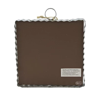 - Sign Has A Wavy Metal Frame And Loop At The Top For Hanging.